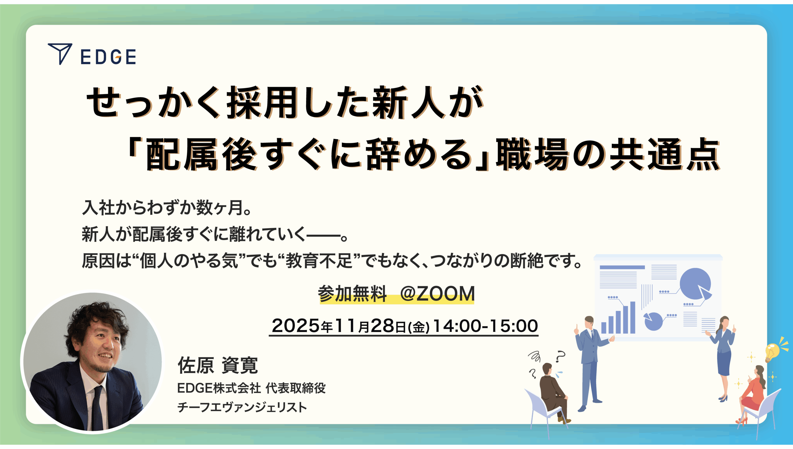 【ご好評につきアーカイブ配信決定‼】御社のOJT、昨年のままで大丈夫ですか? 〜「ホワイトすぎる職場の若手離職」問題に端を発するイマドキの新人育成3つのポイント〜